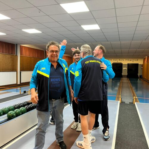 Kreisliga Ost: Gut Holz Flügelrad 2 – TSV Winkelhaid 1 0:6 (1965:2052 Holz – Mit einem Auswärtssieg startete die Erste der Winkelhaider Sportkegler als Tabellenerster in die neue Saison. Weil die Stammspieler Andreas und Lothar Schmidt fehlten, wurden Helmut Neugebauer und Dieter Czerkus von der zweiten Mannschaft eingesetzt. Neugebauer gewann gleich den ersten Satz gegen Michael Fritsch mit 135:115 Holz, gab dann aber die beinen folgenden Durchgänge mit insgesamt 220:227 ab. Im entscheidenden Satz holte der Winkelhaider zum 2:2 und 483:475 Holz zum ersten MP auf. Kevin Dorst verlor zunächst mit 112:132 Zählern, um dann aber Thomas Schlegel mit drei Sätzen über mehr als 140 Holz deutlich mit der Tagesbestleistung von 542:517 bei 2:2 Sätzen zu besiegen. Dorst räumte hervorragende 204 Holz ab.